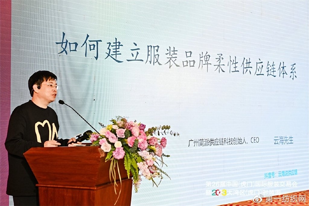 广州简派供应链科技创始人、CEO云海以《如何建立服装品牌柔性供应链体系》为题,结合企业应用案例进行了分享。他表示当前服装产品供应面临着信息不透明、过程不可控、价格不可信、质量不可靠等难题,而服装供应链的规范管理必须是体系化、标准化、信息化、数字化、可视化、柔性化的,通过消灭信息孤岛实现平台化。对于如何建立柔性供应链体系,他建议企业一方面聚焦组织架构、专业人才、管理模式、智能制造等组织能力的柔性建设,另一方面打造公开透明、统一指挥、利润合理、规则明确的柔性操作方式,最终建立全体系打通的产品供应链平台。