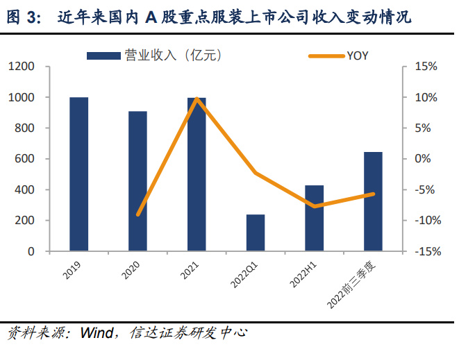1.1、服装行业回顾:终端消费需求逐步回暖,收入端表现好于利润端