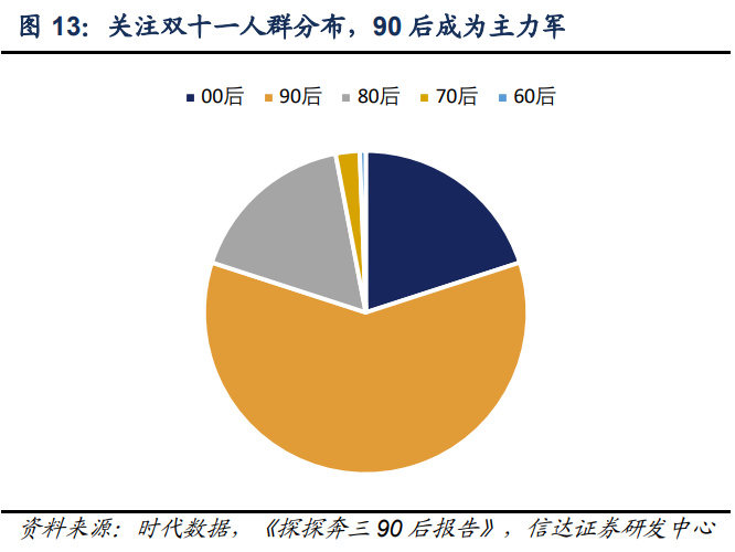 年轻群体成为消费市场中坚力量。一方面年轻用户群体成长于中国经济崛起新时代,具有 较强的自我意识、多元的价值观和个性化的生活主张,民族自信心、认可度更强,对本土 品牌接受度较高;另一方面年轻群体倾向于线上消费,在移动互联网端占据较大的网络话 语权与流量高地,据中新经纬统计,截至 2021年,95/00 后网络用户数量超 3.69 亿,在全 体网民中占比超过 3 成,且仍保持增长态势。此外 95/00 后消费群体逐步进入社会,更加 具有消费潜力,为本土品牌提供较大的成长空间。