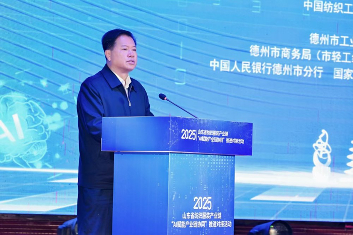山东省政协副主席、党组副书记、省纺织服装产业链链长林峰海在致辞中表示,山东是全国重要工业基地,纺织服装产业作为中国纺织服装产业核心组成与北方新质生产力重要引擎,在稳增长、促消费、惠民生及培育新质生产力方面作用显著。山东通过产业链“链长制”推进产业优化升级,今年前三季度全省纺织业、服装服饰业工业增加值同比分别增长4.1%、1.1%,分别高于全国同行业0.95个、3.5个百分点。德州是我国重要纺织服装产业大市,在新型纺织、家纺等领域竞争优势突出。德州高度重视纺织产业发展,将轻纺纺织列为全市11条标志性产业链,为全省纺织产业高质量发展助力;其中夏津作为全国纱线基地,正通过创新性实施“行业机构+国资平台+市场主体”三方共建模式推动产业发展。