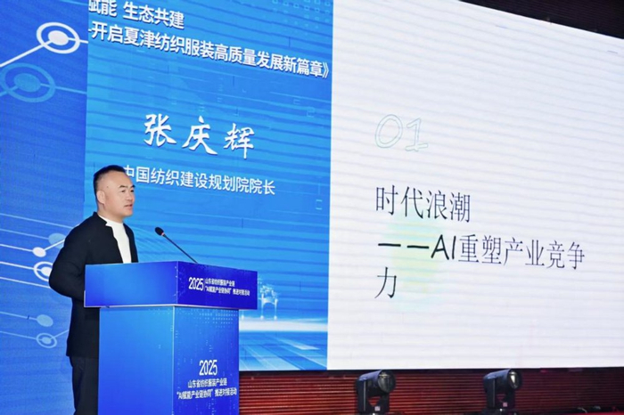 中国纺织建设规划院院长张庆辉以《AI赋能、生态共建-开启夏津纺织服装高质量发展新篇章》为题作专题讲座,系统解析AI技术在纺织产业生产、供应链、市场端的应用路径,提出生态共建的产业升级模式。他强调,拥抱AI是产业转型的必答题。目前行业AI应用呈现“消费端强、生产端弱”的特点,Zara、亚马逊及国内电商平台已在设计、选品等消费端广泛应用AI,但生产与供应链端仍处于起步阶段,山东可借鉴浙江、江苏、福建等省份的先进经验。他提到,从2023年底开始,中国纺织建设规划院与夏津达成深度战略合作,以夏津现代产业园建设为核心,围绕夏津构建现代纺织产业体系这一目标,确立了数字化、智能化、时尚化的发展路径。为了确保战略规划的落地实施,在构建政产学研用平台的同时,引入纱纤亿工业互联网平台,与夏津县三方共建,投资建立了纱纤亿(山东)工业互联网平台,在深挖夏津纱线价值的基础上,打通产业上下游,推进产业链生态协同,助力夏津纺织产业高质量发展。