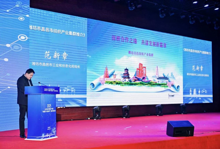 夏津县委副书记、县长赵之达以《激活链式协同新动能带动纺织集群新跃升》为主题,介绍了夏津培育纺织产业集群的实践经验。他表示,夏邑纺织服装产业规模突出,有246家企业、300万锭纺纱规模(占山东1/10),获多项产业荣誉。近年通过四举措推动产业升级:一是建协同生态,联多方共建产业园、政产学研用平台;二是打造产业大脑,建纺织产业平台,联动多地资源;三是深化升级,开展企业改造,探索绿色低碳发展;四是创新产品供给,以市场为导向实现柔性生产。未来,夏邑将按“一园区一平台两基地”战略,构建500亿级产业集群,为先进制造业强省建设发力。