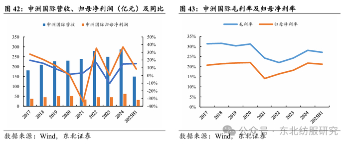 2025H1公司营业收入同比增长12.4%至12.3亿美元。分品类来看,休闲/运动户外/牛仔/内衣/毛衣收入分别同增11.4%/12.4%/10.3%/9.5%/29.2%。2016年拓展运动品类,陆续进入Adidas、Nike及Lululemon等优质客户供应链,近年来运动品类订单持续放量驱动增长。Adidas及Nike等客户供应链份额提升空间广阔。