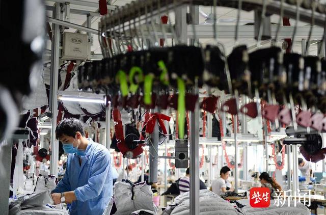 在波司登集团的全新生产线上,羽绒填充物与防风面料在智能缝纫系统的穿梭下精准成型,自动化吊挂系统将半成品输送到每一位工人手边,一件件成品正被打包发往全国各地,车间内一派升温的景象与室外骤降的气温形成鲜明对比。