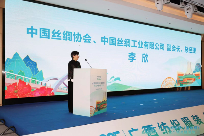 中国丝绸协会副会长、中国丝绸工业有限公司总经理李欣在发言中表示,在当前复杂多变的国内外经济形势下,广西工信厅牵头组织本次产销对接活动意义深远,既是搭建高效务实的合作平台,更是推动产业开放与升级的重要实践。他认为,本次活动将有力促进跨区域、跨领域资源整合,助力全行业实现产业链、供应链、价值链协同升级,未来5—10年将是广西纺织服装(茧丝绸)产业迈入跨越式高质量发展的“黄金阶段”。