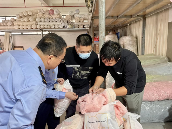 与此同时,中心技术人员协同福安市市场监管局、工信局组成联合检查组,深入当地服装生产企业开展实地监督检查。检查组紧扣前期培训重点内容,通过查阅生产记录、核查产品标识、抽样检测等方式,聚焦纤维含量合规性、安全指标达标等核心环节,现场提出整改建议,指导企业完善质量管控体系,构建“培训+检查”的闭环服务模式。