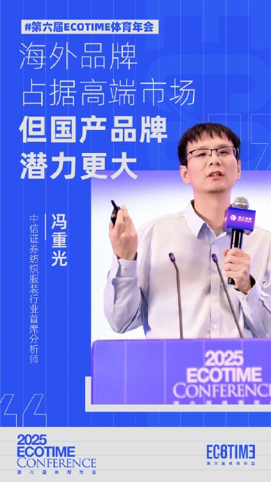 #第六届ECOTIME体育年会# 中信证券纺织服装行业首席分析师冯重光 :海外品牌占据高端市场,但国产品牌潜力更大。